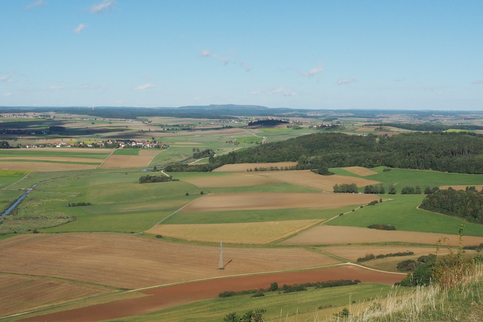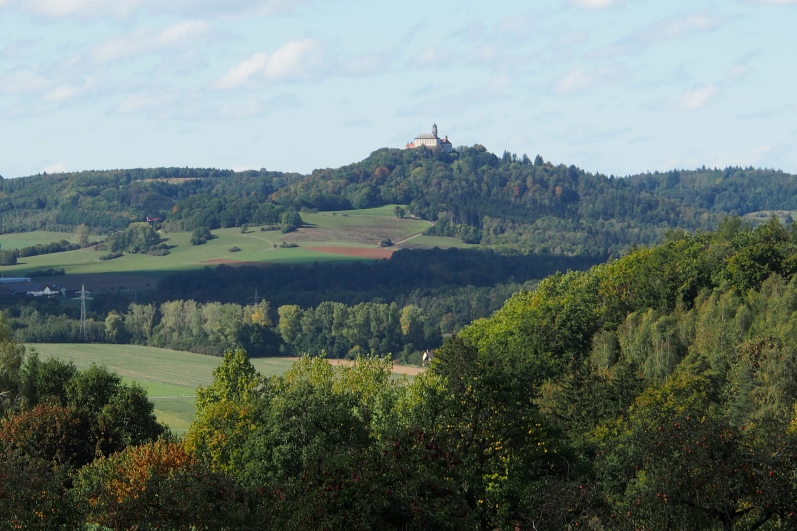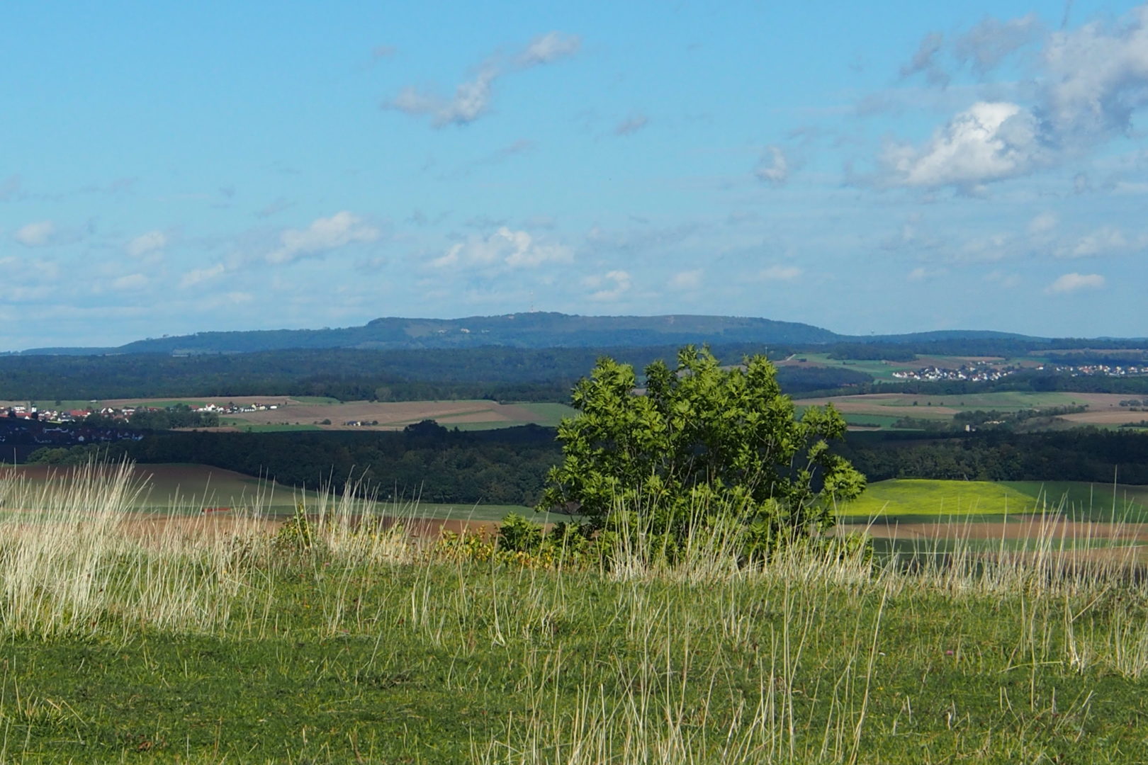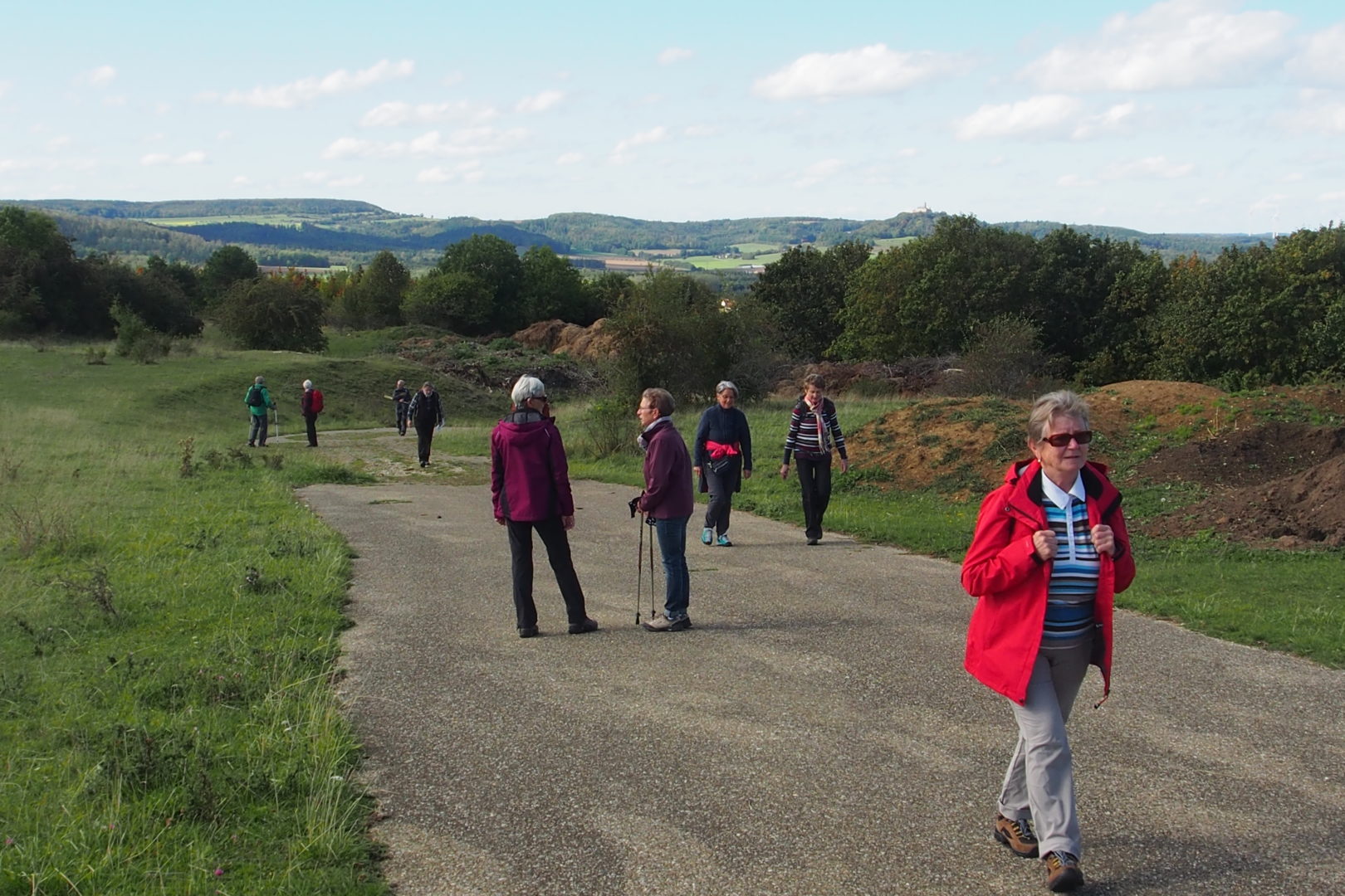 Nach Begrüßung durch Wanderführer Friedrich Eberle, begannen wir die Wanderung mit dem Anstieg zum nahen Blasenberg. Von hier aus bot sich uns, bei schönstem herbstlichem Sonnenschein, ein grandioser Ausblick. Vom nahen Ipf, über das gesamte Becken des Nördlinger Rieses, bis zum Hesselberg und Hahnenkamm im Norden sowie der Schwäbischen Alb im Süden und Westen.