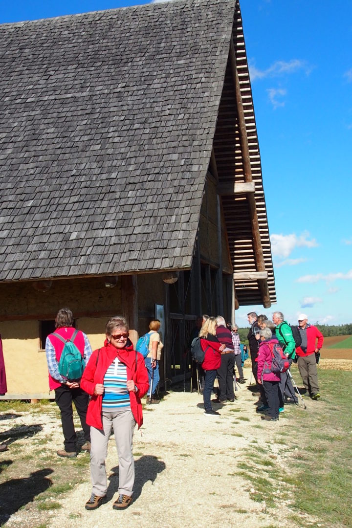 Nach kurzem Aufenthalt wanderten wir weiter zum nahe gelegenen Ipf mit seinen Ringwällen aus keltischer Zeit. Vorbei an rekonstruierten keltischen Bauwerken erreichten wir die nahezu kreisrunde Hochfläche des Berges. Von hier konnten wir nochmals den grandiosen Ausblick über das Ries und das umliegende Land genießen. Über den Weiler Osterholz und vorbei an einem keltischen Grabhügel erreichten wir auf dem Rückweg wieder unseren Ausgangsort Kirchheim. Im Landhotel Oßwald endete diese Wanderung mit einer zünftigen Brotzeit.