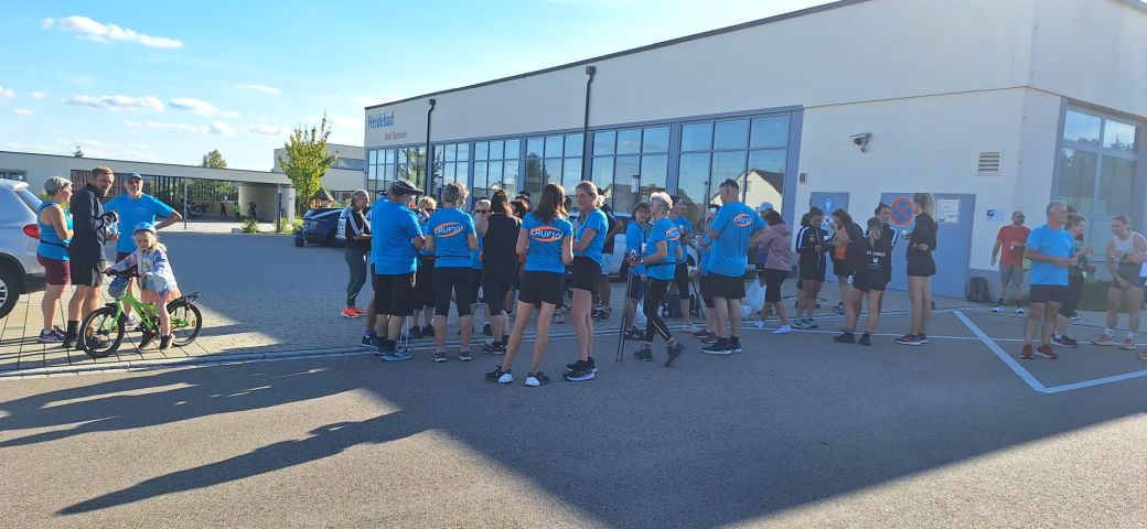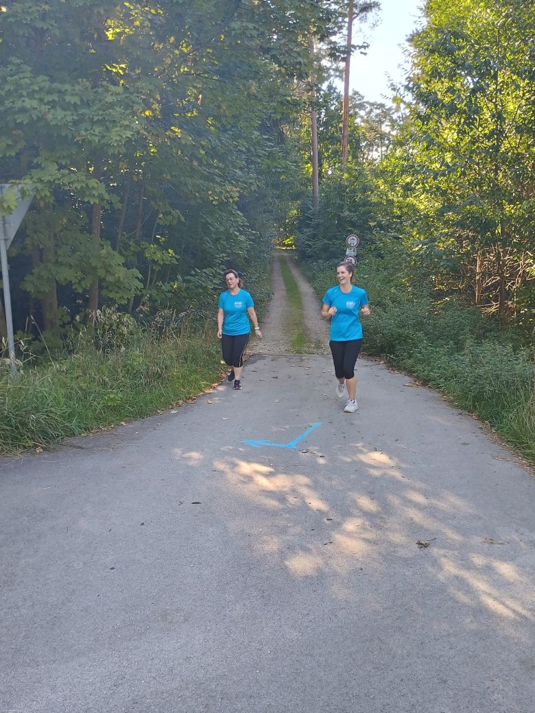 Schon am nächsten Montag ging es los und ich war positiv überrascht, wie viele Laufbegeisterte sich am Parkplatz vor dem Hallenbad in Bechhofen zum Start der Lauf10!-Aktion eingefunden haben. Nach einem herzlichen Willkommen durch Monia Gundacker, 1. Sektionsvorsitzende, und Svenja Biewald, Leiterin und Trainerin des Lauf10!-Programms, sowie dem gemeinsamen Aufwärmen ging es an die Gruppeneinteilung – neben den Walkern und Dauerläufern starteten zwei Lauf10!-Gruppen: Die Anfänger, die mit flottem Gehen starteten, und die Wiedereinsteiger, die etwas schneller kleine Laufeinheiten einbauten.