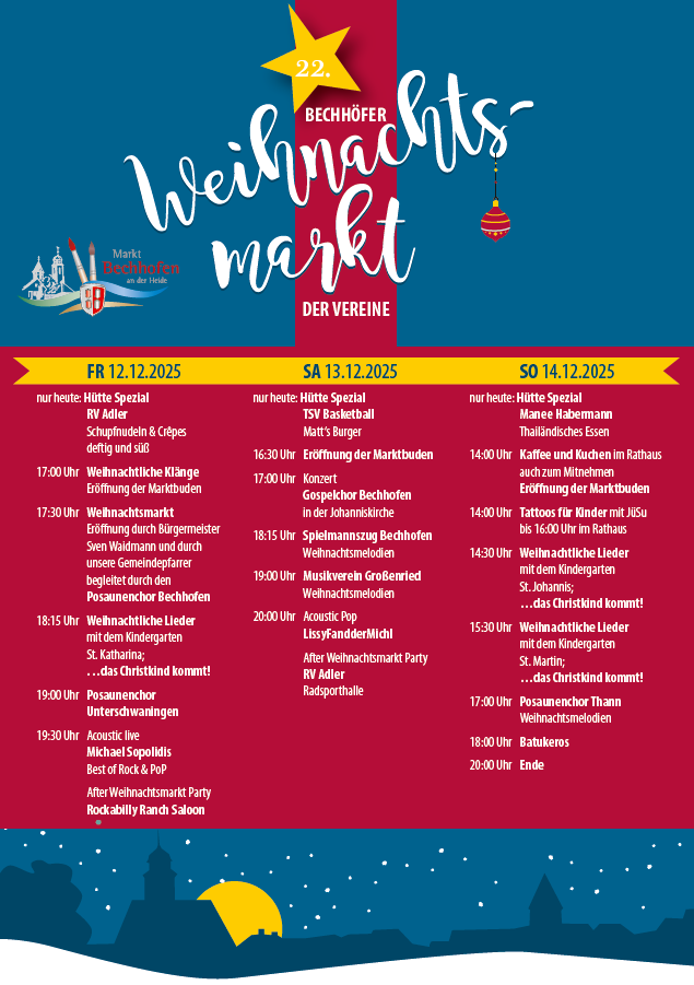 Herzliche Einladung zum Weihnachtsmarkt der Vereine am dritten Adventswochenende in Bechhofen. Wir sorgen wie immer für das Après-Ski-Flair.